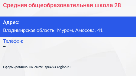Средняя общеобразовательная школа №28 по адресу Владимирская область, Муром, Амосова, 41 в дальнейшем Организация, размещена в следующих категориях: