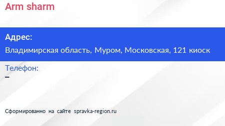 Arm-sharm по адресу Владимирская область, Муром, Московская, 121 киоск в дальнейшем Организация, размещена в следующих категориях: