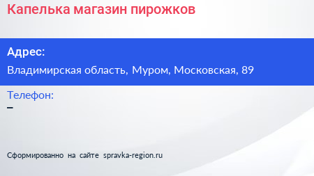 Капелька, магазин пирожков по адресу Владимирская область, Муром, Московская, 89 в дальнейшем Организация, размещена в следующих категориях: