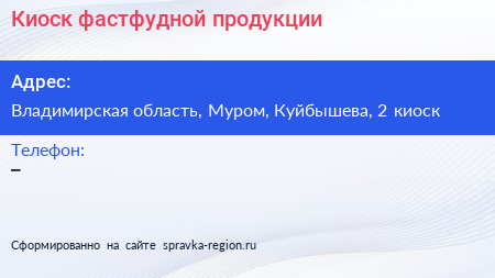Киоск фастфудной продукции по адресу Владимирская область, Муром, Куйбышева, 2 киоск в дальнейшем Организация, размещена в следующих категориях: