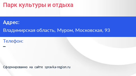 Парк культуры и отдыха по адресу Владимирская область, Муром, Московская, 93 в дальнейшем Организация, размещена в следующих категориях: