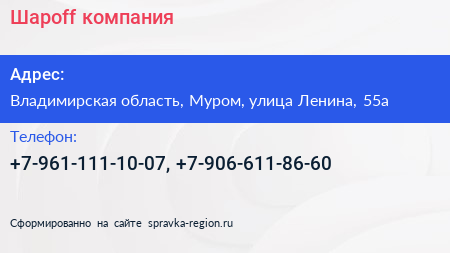 Шарoff, компания по адресу Владимирская область, Муром, улица Ленина, 55а в дальнейшем Организация, размещена в следующих категориях: