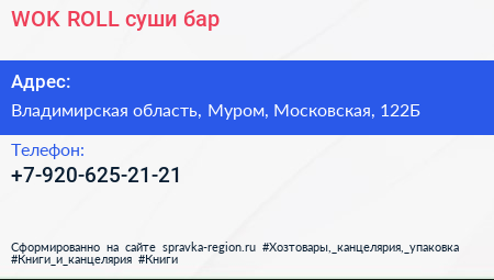 WOK & ROLL, суши-бар по адресу Владимирская область, Муром, Московская, 122Б в дальнейшем Организация, размещена в следующих категориях: