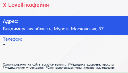 X.Lovelli, кофейня по адресу Владимирская область, Муром, Московская, 87 в дальнейшем Организация, размещена в следующих категориях: