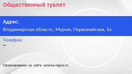 Общественный туалет по адресу Владимирская область, Муром, Первомайская, 1а в дальнейшем Организация, размещена в следующих категориях: