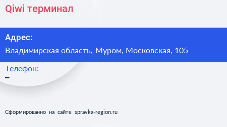 Qiwi, терминал по адресу Владимирская область, Муром, Московская, 105 в дальнейшем Организация, размещена в следующих категориях: