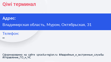 Qiwi, терминал по адресу Владимирская область, Муром, Октябрьская, 31 в дальнейшем Организация, размещена в следующих категориях: