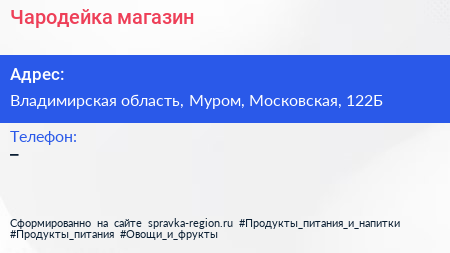 Чародейка, магазин по адресу Владимирская область, Муром, Московская, 122Б в дальнейшем Организация, размещена в следующих категориях: