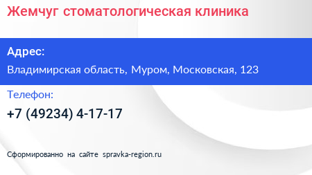 Жемчуг, стоматологическая клиника по адресу Владимирская область, Муром, Московская, 123 в дальнейшем Организация, размещена в следующих категориях: