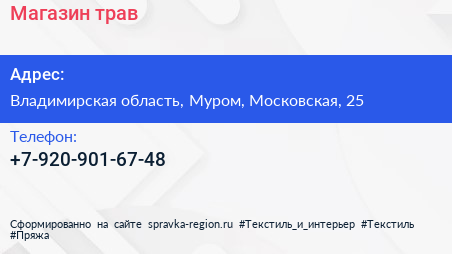 Магазин трав по адресу Владимирская область, Муром, Московская, 25 в дальнейшем Организация, размещена в следующих категориях: