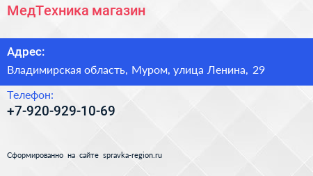 МедТехника, магазин по адресу Владимирская область, Муром, улица Ленина, 29 в дальнейшем Организация, размещена в следующих категориях: