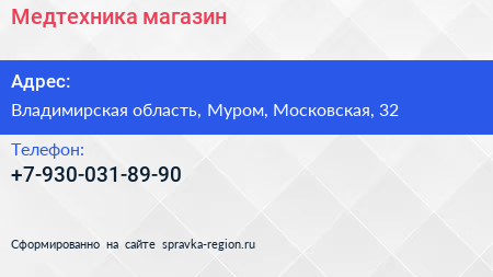 Медтехника, магазин по адресу Владимирская область, Муром, Московская, 32 в дальнейшем Организация, размещена в следующих категориях: