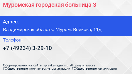 Муромская городская больница №3 по адресу Владимирская область, Муром, Войкова, 11д в дальнейшем Организация, размещена в следующих категориях:
