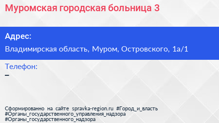 Муромская городская больница №3 по адресу Владимирская область, Муром, Островского, 1а/1 в дальнейшем Организация, размещена в следующих категориях: