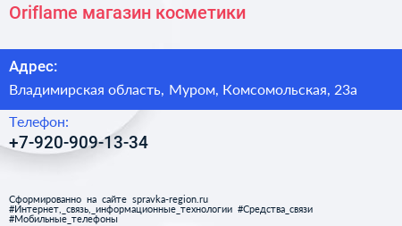 Oriflame, магазин косметики по адресу Владимирская область, Муром, Комсомольская, 23а в дальнейшем Организация, размещена в следующих категориях:
