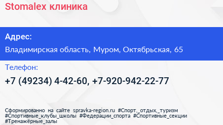 Stomalex, клиника по адресу Владимирская область, Муром, Октябрьская, 65 в дальнейшем Организация, размещена в следующих категориях: