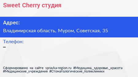 Sweet Cherry, студия по адресу Владимирская область, Муром, Советская, 35 в дальнейшем Организация, размещена в следующих категориях: