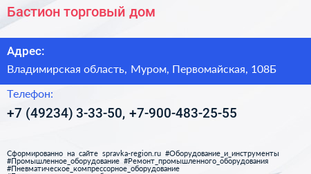 Бастион, торговый дом по адресу Владимирская область, Муром, Первомайская, 108Б в дальнейшем Организация, размещена в следующих категориях: