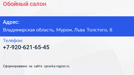 Обойный салон по адресу Владимирская область, Муром, Льва Толстого, 8 в дальнейшем Организация, размещена в следующих категориях: