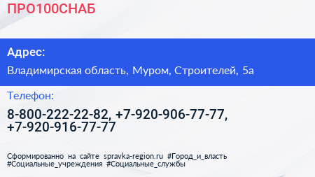 ПРО100СНАБ по адресу Владимирская область, Муром, Строителей, 5а в дальнейшем Организация, размещена в следующих категориях: