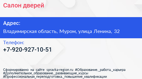 Салон дверей по адресу Владимирская область, Муром, улица Ленина, 32 в дальнейшем Организация, размещена в следующих категориях: