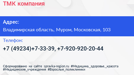 ТМК, компания по адресу Владимирская область, Муром, Московская, 103 в дальнейшем Организация, размещена в следующих категориях: