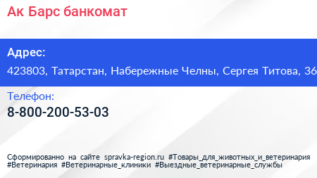 Ак Барс, банкомат по адресу 423803, Татарстан, Набережные Челны, Сергея Титова, 36 в дальнейшем Организация, размещена в следующих категориях:
