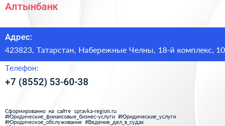 Алтынбанк по адресу 423823, Татарстан, Набережные Челны, 18-й комплекс, 10 в дальнейшем Организация, размещена в следующих категориях: