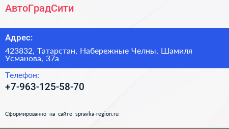 АвтоГрадСити по адресу 423832, Татарстан, Набережные Челны, Шамиля Усманова, 37а в дальнейшем Организация, размещена в следующих категориях: