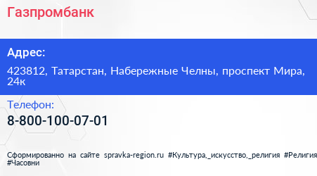 Газпромбанк по адресу 423812, Татарстан, Набережные Челны, проспект Мира, 24к в дальнейшем Организация, размещена в следующих категориях: