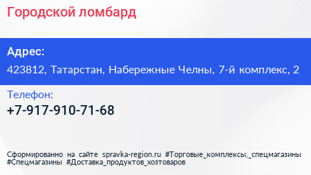 Городской ломбард по адресу 423812, Татарстан, Набережные Челны, 7-й комплекс, 2 в дальнейшем Организация, размещена в следующих категориях: