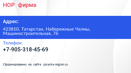 НОР+, фирма по адресу 423810, Татарстан, Набережные Челны, Машиностроительная, 76 в дальнейшем Организация, размещена в следующих категориях: