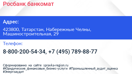 Росбанк, банкомат по адресу 423800, Татарстан, Набережные Челны, Машиностроительная, 29 в дальнейшем Организация, размещена в следующих категориях: