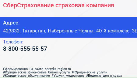 СберСтрахование, страховая компания по адресу 423832, Татарстан, Набережные Челны, 40-й комплекс, 3Б в дальнейшем Организация, размещена в следующих категориях:
