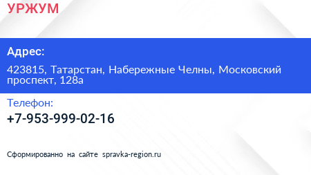 УРЖУМ по адресу 423815, Татарстан, Набережные Челны, Московский проспект, 128а в дальнейшем Организация, размещена в следующих категориях: