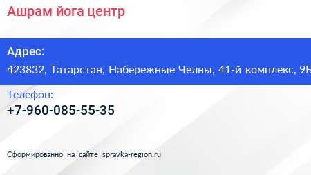 Ашрам, йога-центр по адресу 423832, Татарстан, Набережные Челны, 41-й комплекс, 9Б в дальнейшем Организация, размещена в следующих категориях: