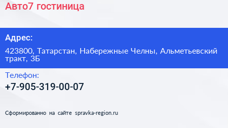 Авто7, гостиница по адресу 423800, Татарстан, Набережные Челны, Альметьевский тракт, 3Б в дальнейшем Организация, размещена в следующих категориях: