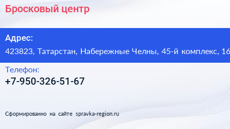 Бросковый центр по адресу 423823, Татарстан, Набережные Челны, 45-й комплекс, 16 в дальнейшем Организация, размещена в следующих категориях: