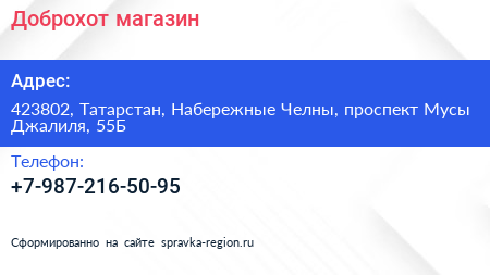 Доброхот, магазин по адресу 423802, Татарстан, Набережные Челны, проспект Мусы Джалиля, 55Б в дальнейшем Организация, размещена в следующих категориях: