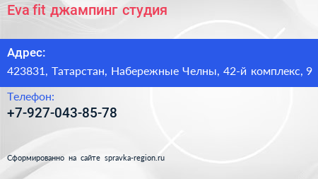 Eva fit, джампинг-студия по адресу 423831, Татарстан, Набережные Челны, 42-й комплекс, 9 в дальнейшем Организация, размещена в следующих категориях: