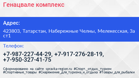 Генацвале, комплекс по адресу 423803, Татарстан, Набережные Челны, Мелекесская, 3а ст1 в дальнейшем Организация, размещена в следующих категориях: