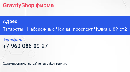GravityShop, фирма по адресу Татарстан, Набережные Челны, проспект Чулман, 89 ст2 в дальнейшем Организация, размещена в следующих категориях: