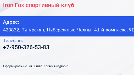 Iron-Fox, спортивный клуб по адресу 423832, Татарстан, Набережные Челны, 41-й комплекс, 9Б в дальнейшем Организация, размещена в следующих категориях: