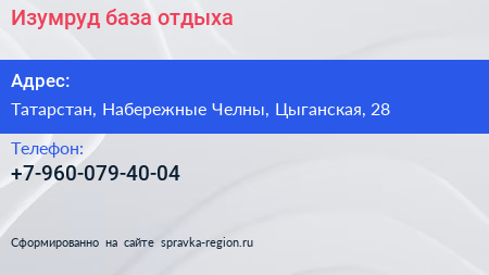 Изумруд, база отдыха по адресу Татарстан, Набережные Челны, Цыганская, 28 в дальнейшем Организация, размещена в следующих категориях: