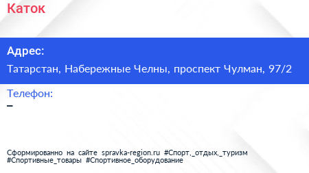 Каток по адресу Татарстан, Набережные Челны, проспект Чулман, 97/2 в дальнейшем Организация, размещена в следующих категориях: