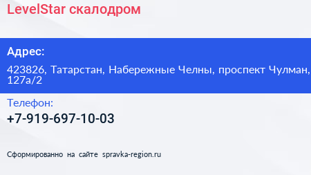 LevelStar, скалодром по адресу 423826, Татарстан, Набережные Челны, проспект Чулман, 127а/2 в дальнейшем Организация, размещена в следующих категориях: