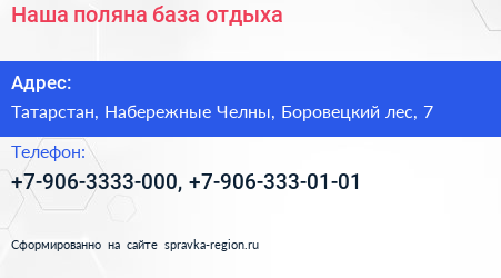 Наша поляна, база отдыха по адресу Татарстан, Набережные Челны, Боровецкий лес, 7 в дальнейшем Организация, размещена в следующих категориях: