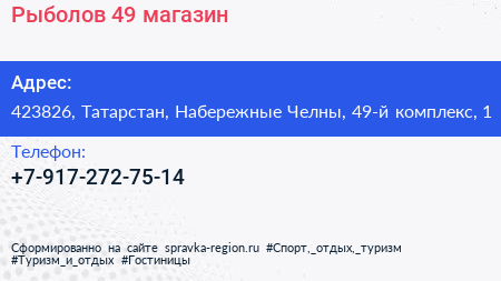 Рыболов 49, магазин по адресу 423826, Татарстан, Набережные Челны, 49-й комплекс, 1 в дальнейшем Организация, размещена в следующих категориях: