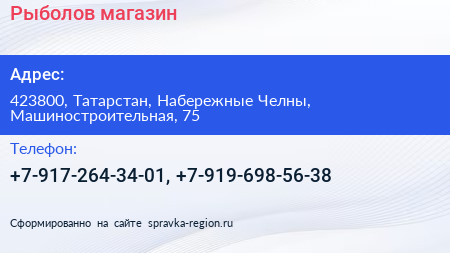 Рыболов, магазин по адресу 423800, Татарстан, Набережные Челны, Машиностроительная, 75 в дальнейшем Организация, размещена в следующих категориях: