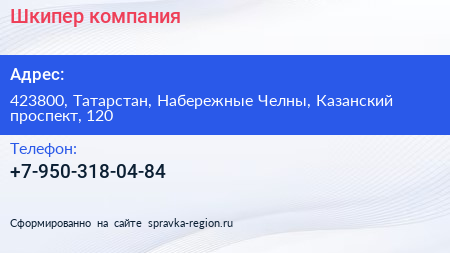 Шкипер, компания по адресу 423800, Татарстан, Набережные Челны, Казанский проспект, 120 в дальнейшем Организация, размещена в следующих категориях: